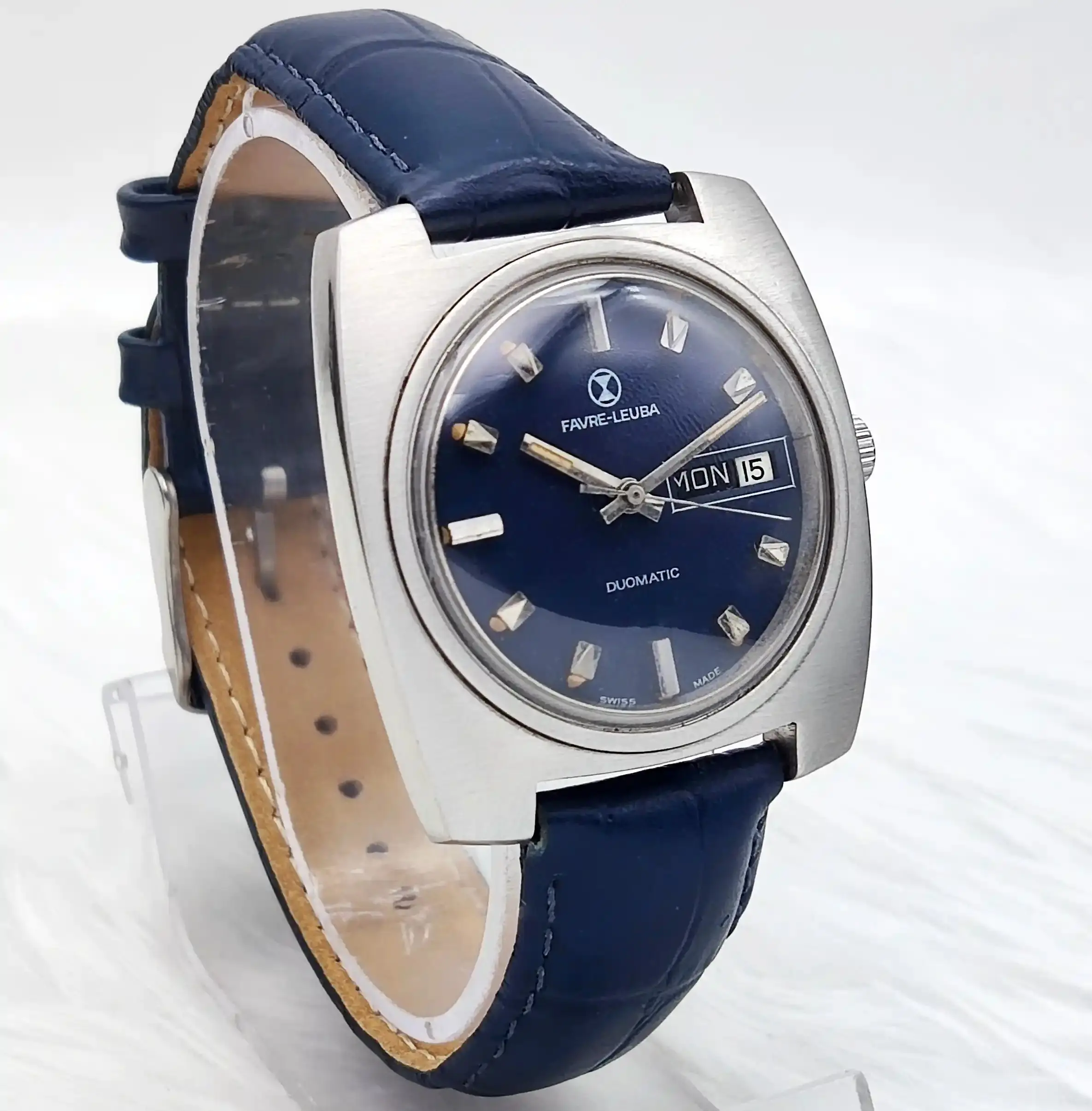 Favre Leuba Geneve Duomatic Swiss Made 908 Blue Dial Mechanical Automatic