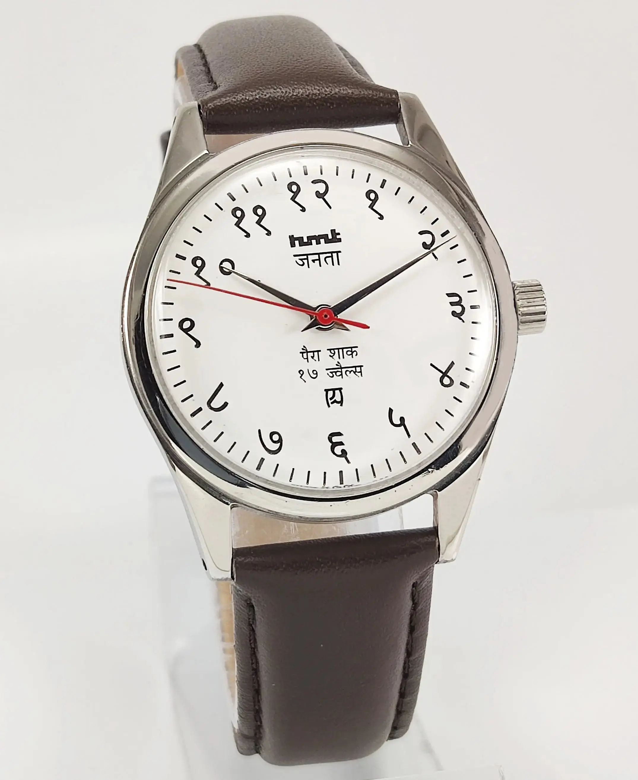 HMT Janata Para Shock 17 Jewels White Devanagari Dial Mechanical Hand winding Men's Wrist Watch—