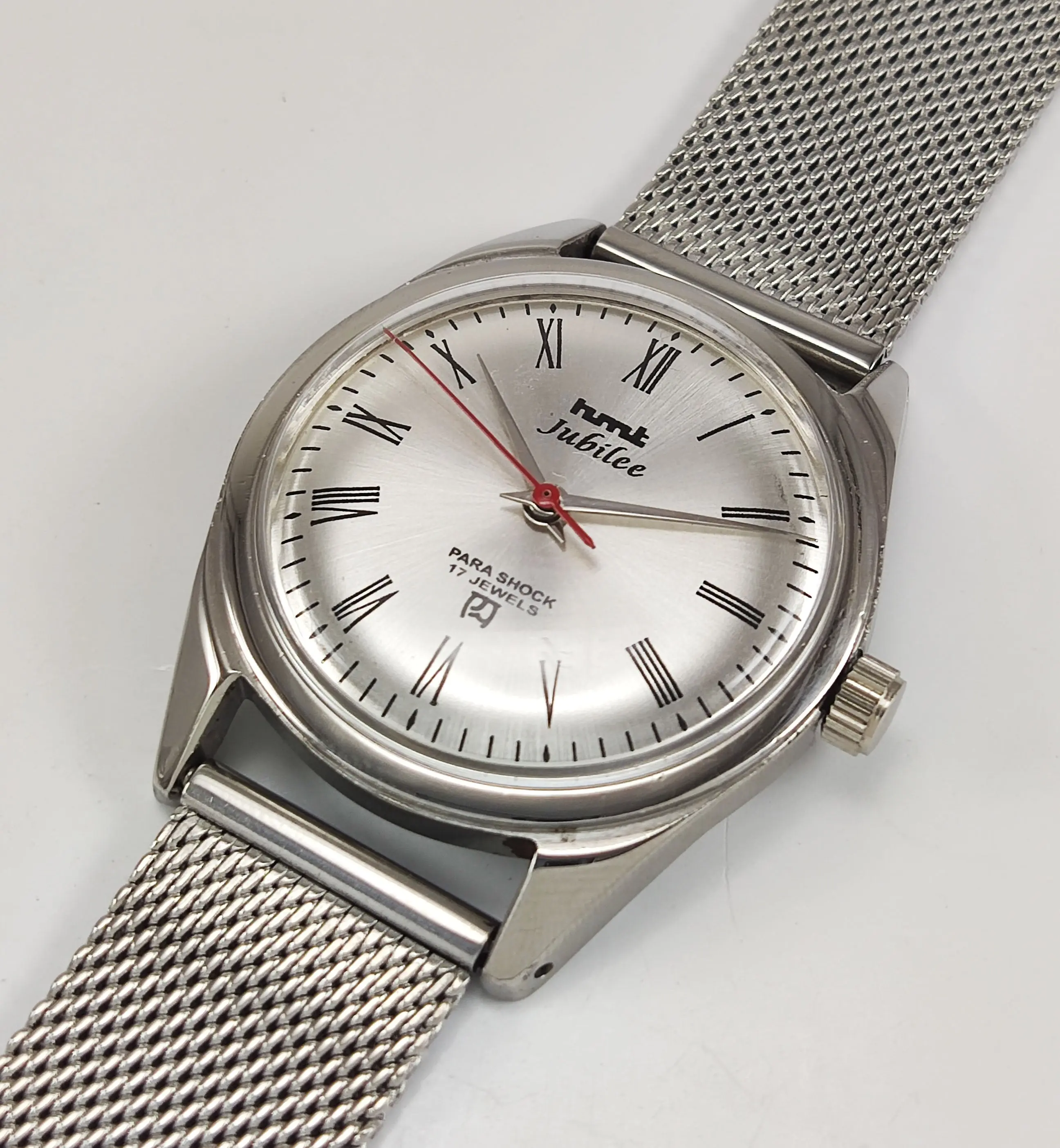HMT Jubilee Para Shock 17 Jewels Silver Dial Mechanical Hand winding Men's Wrist Watch